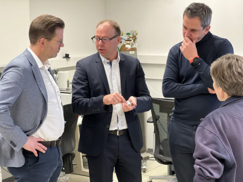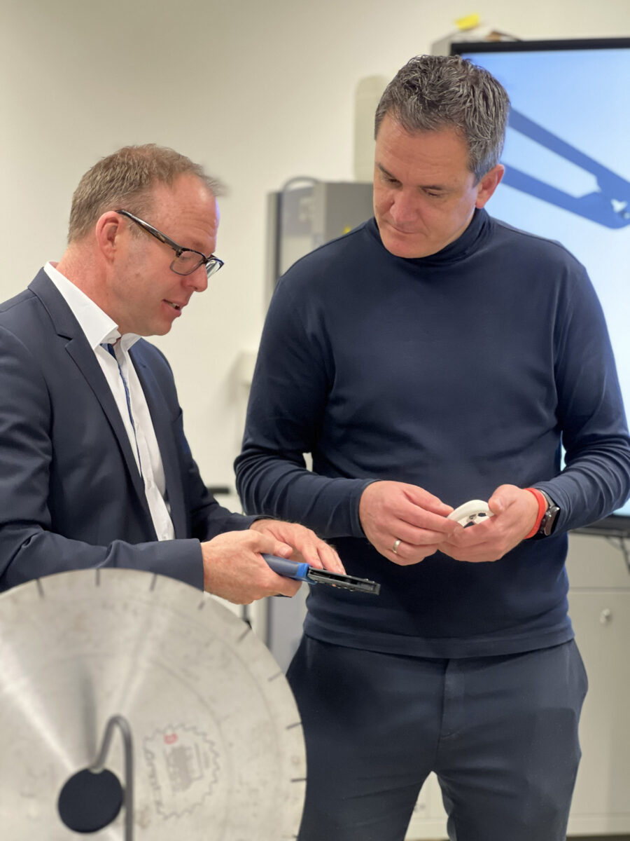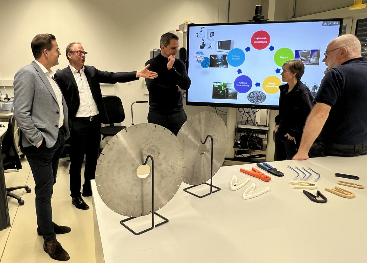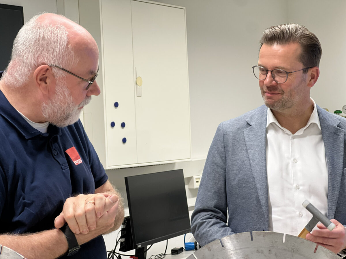 Raphael Tigges, wissenschaftspolitischer Sprecher der CDU-Landtagsfraktion und Vorsitzender des Kuratoriums der Johannes-Rau-Forschungsgemeinschaft (JRF), sowie der Remscheider Landtagsabgeordnete Jens-Peter Nettekoven besuchten die FGW Remscheid, um sich über ihre Arbeit und aktuellen Projekte zu informieren. Im Fokus standen die Rolle der FGW als regionale Forschungseinrichtung und ihre Bedeutung für die industrielle Wertschöpfung.