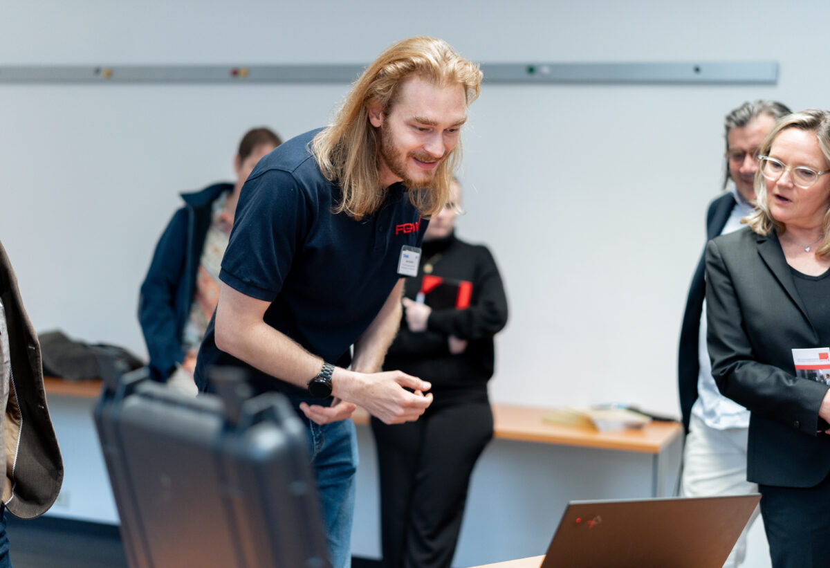 Besonderes Aufsehen erregte die Live-Demonstration des von der FGW eigenentwickelten KI-Koffers. Jens Kneifel bewies eindrucksvoll, dass komplexe KI-Prozesse heute schnell, effizient und sicher abbildbar sind.